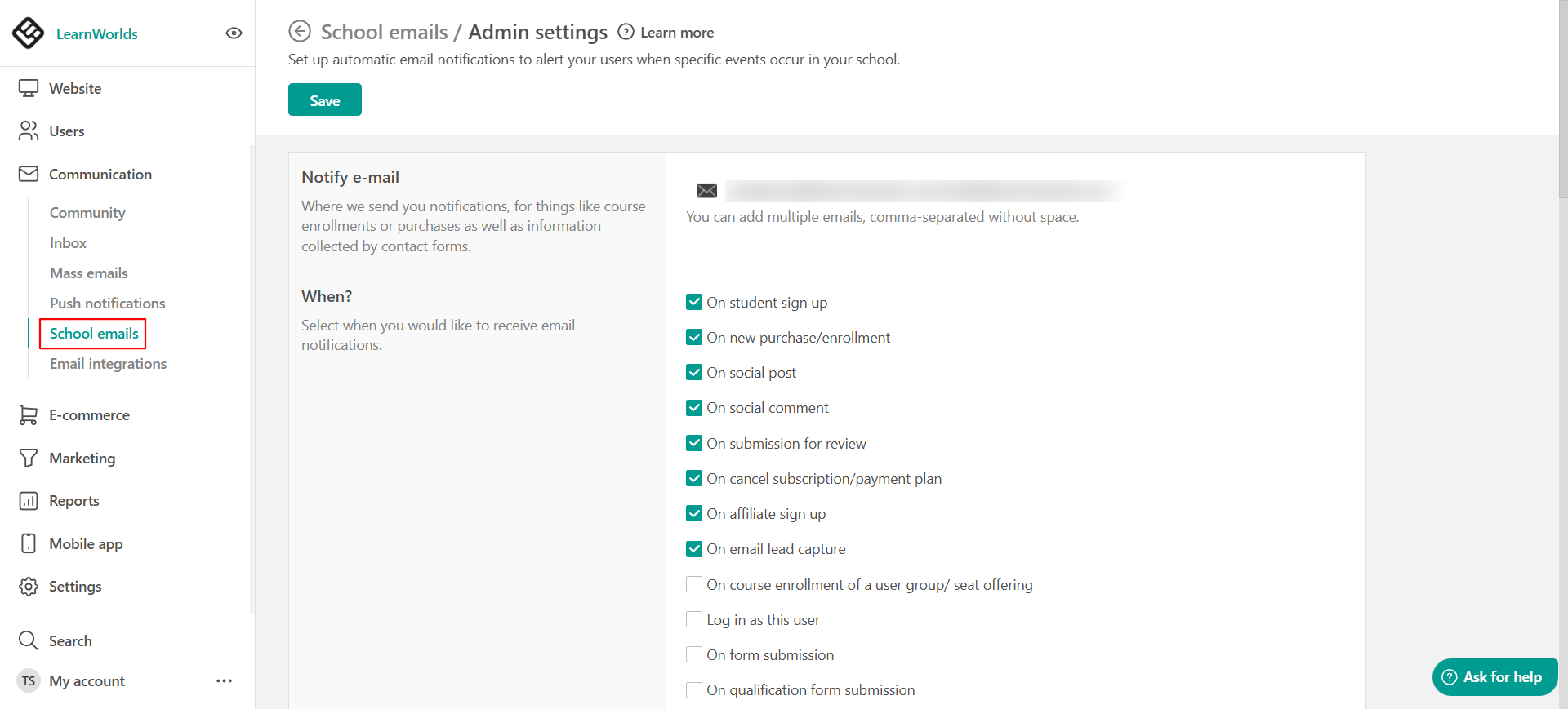 2. In Notify e-mail, add your email and click on Save.