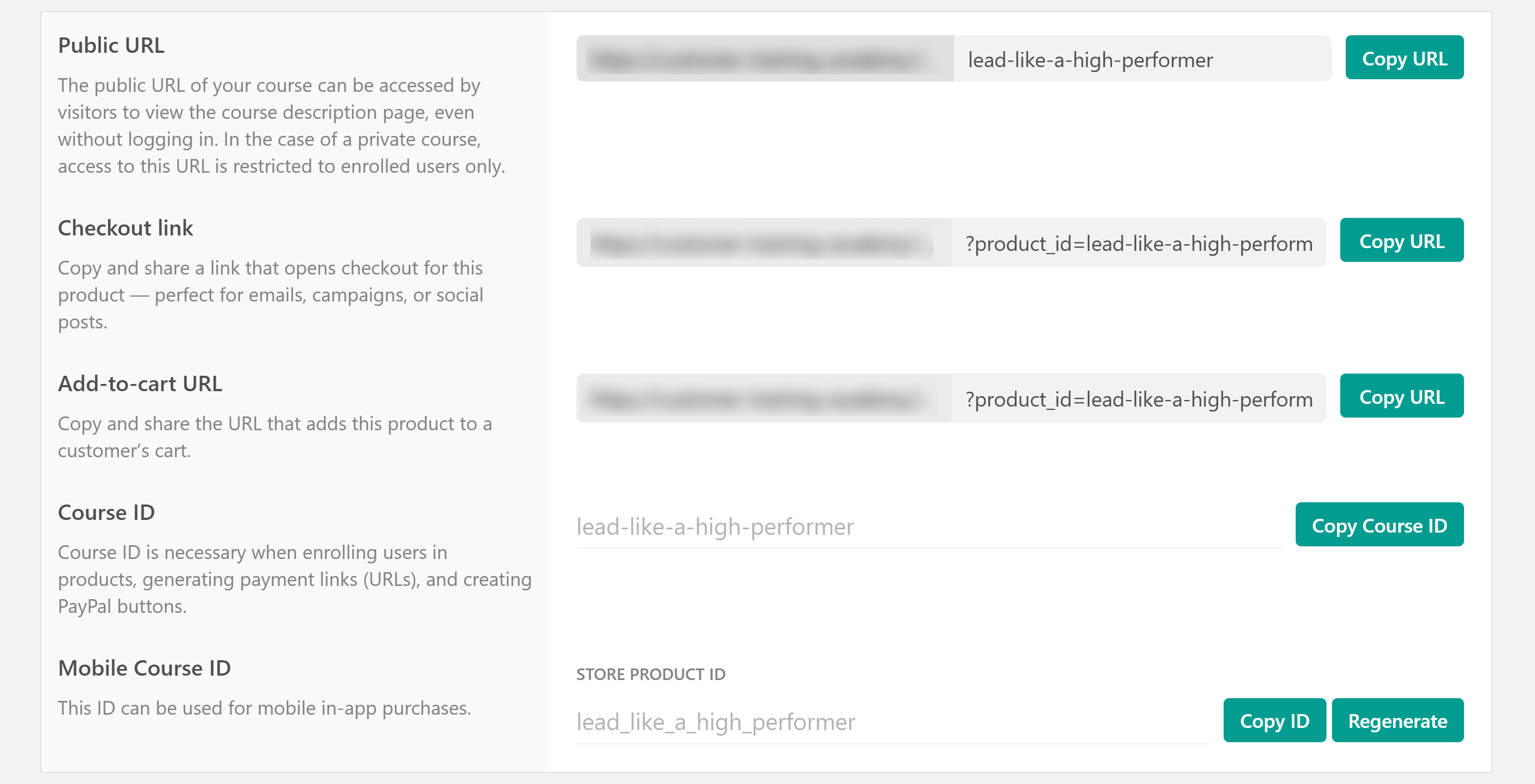 When setting up a new course or learning program, you choose a title and a public URL (slug). If needed, you can change the slug later to make it more relevant or easier to share.