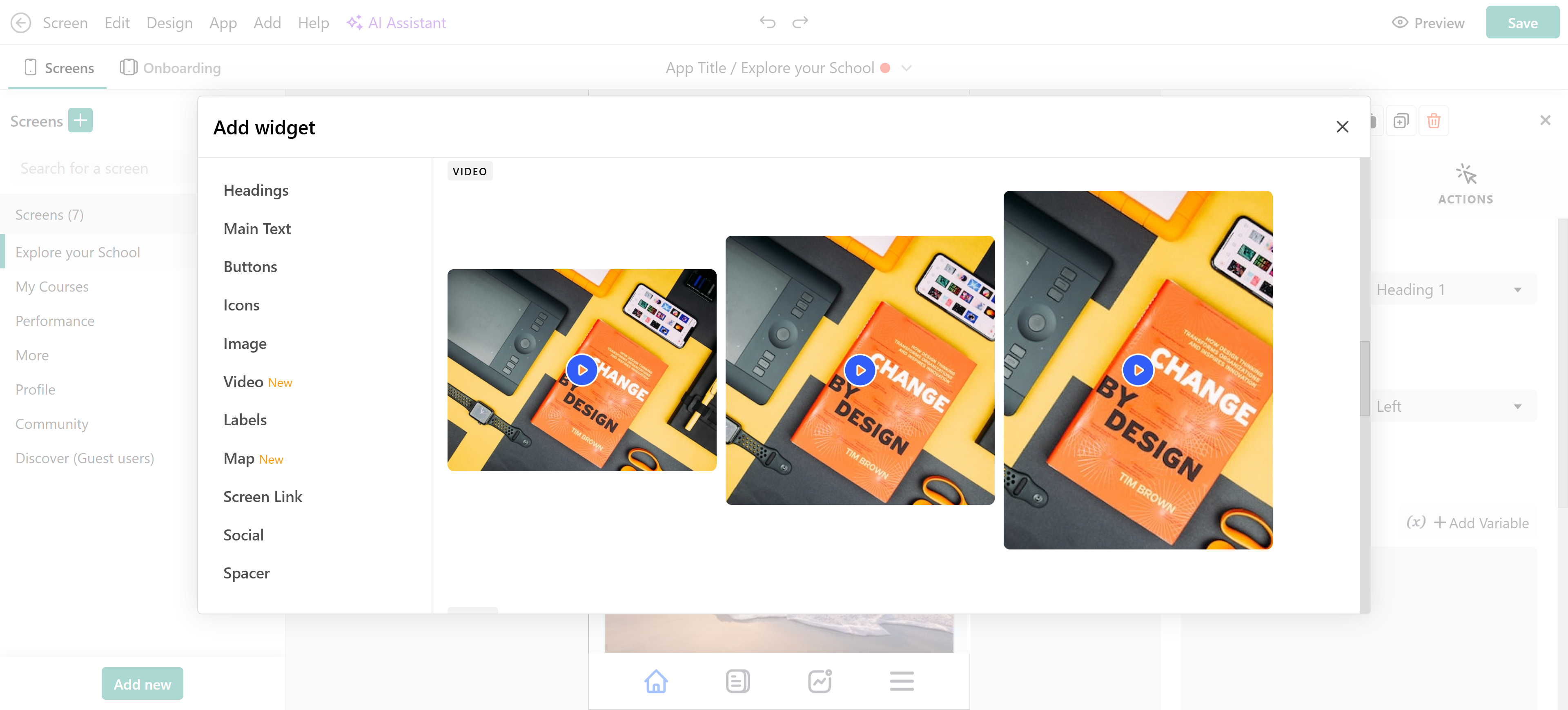 You can tailor your mobile screens to your unique style and specific requirements using our Mobile Builder. Enjoy the freedom to create and customize screens by adding sections, and widgets, adjusting colors, fonts, and more. Feel free to create and edit as many screens as necessary. While you can customize the More option, note that the Profile screen and the Community screen are for preview only.