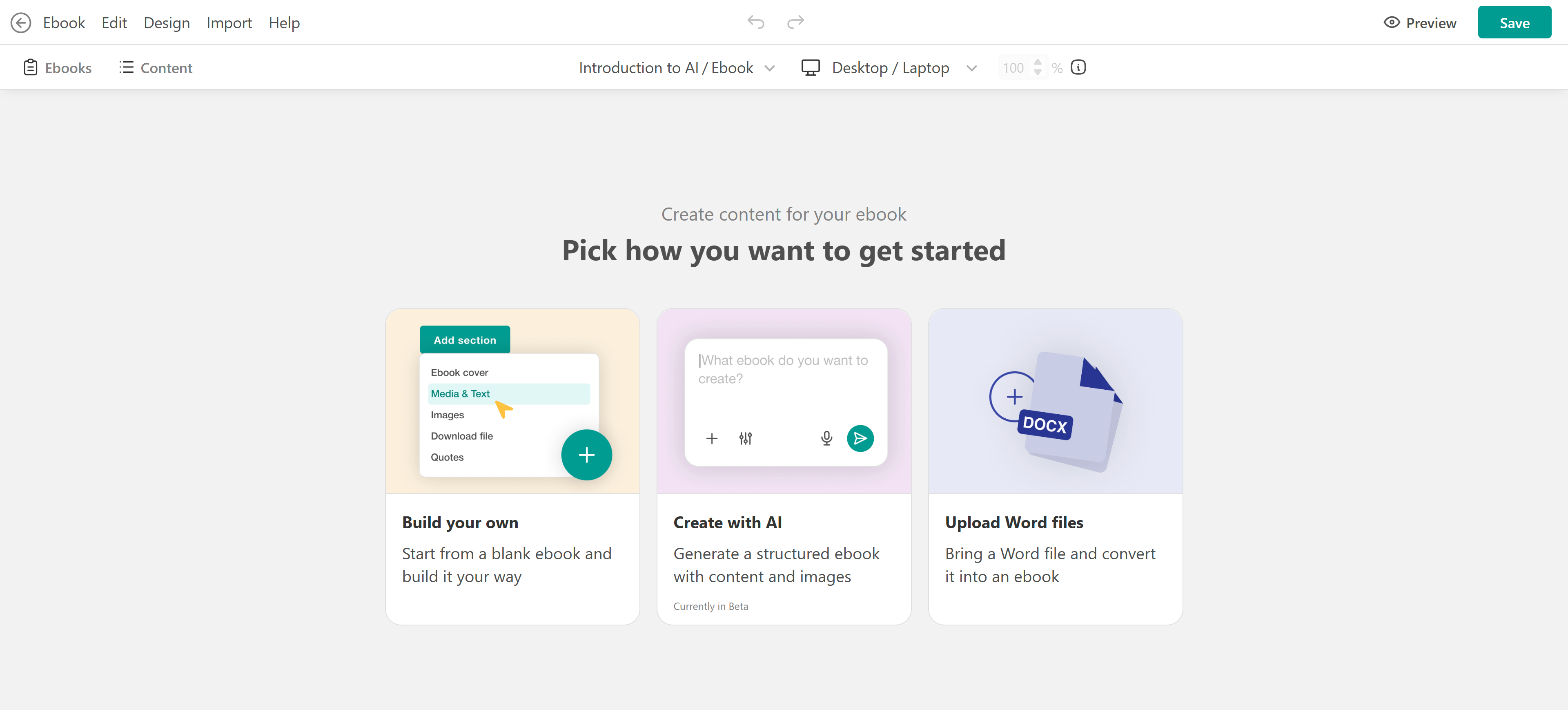 Use this option to generate a full eBook from a simple idea.
