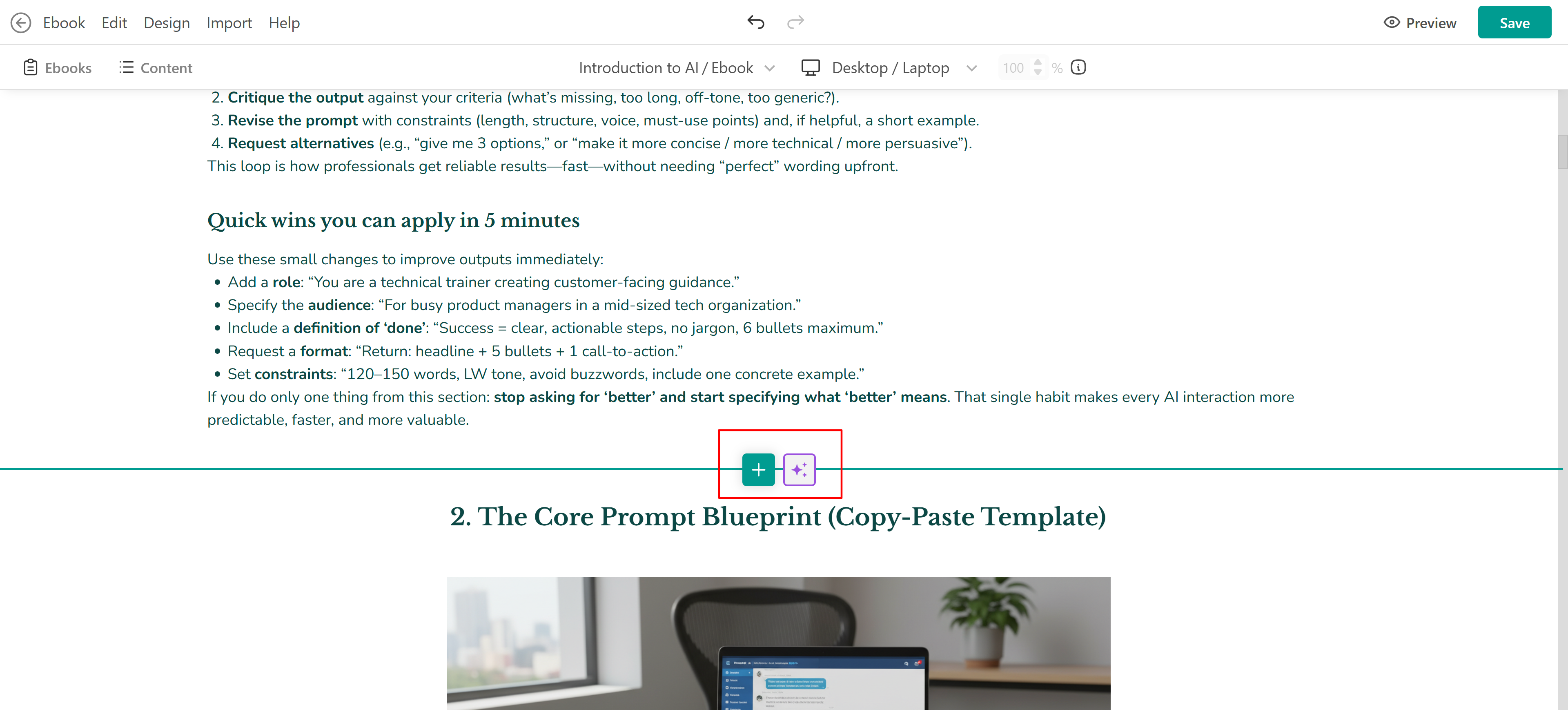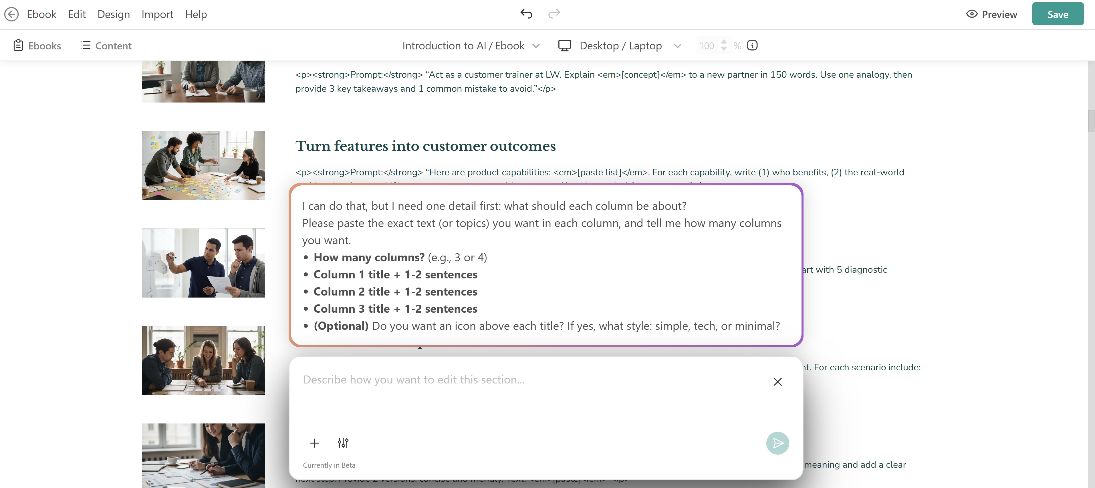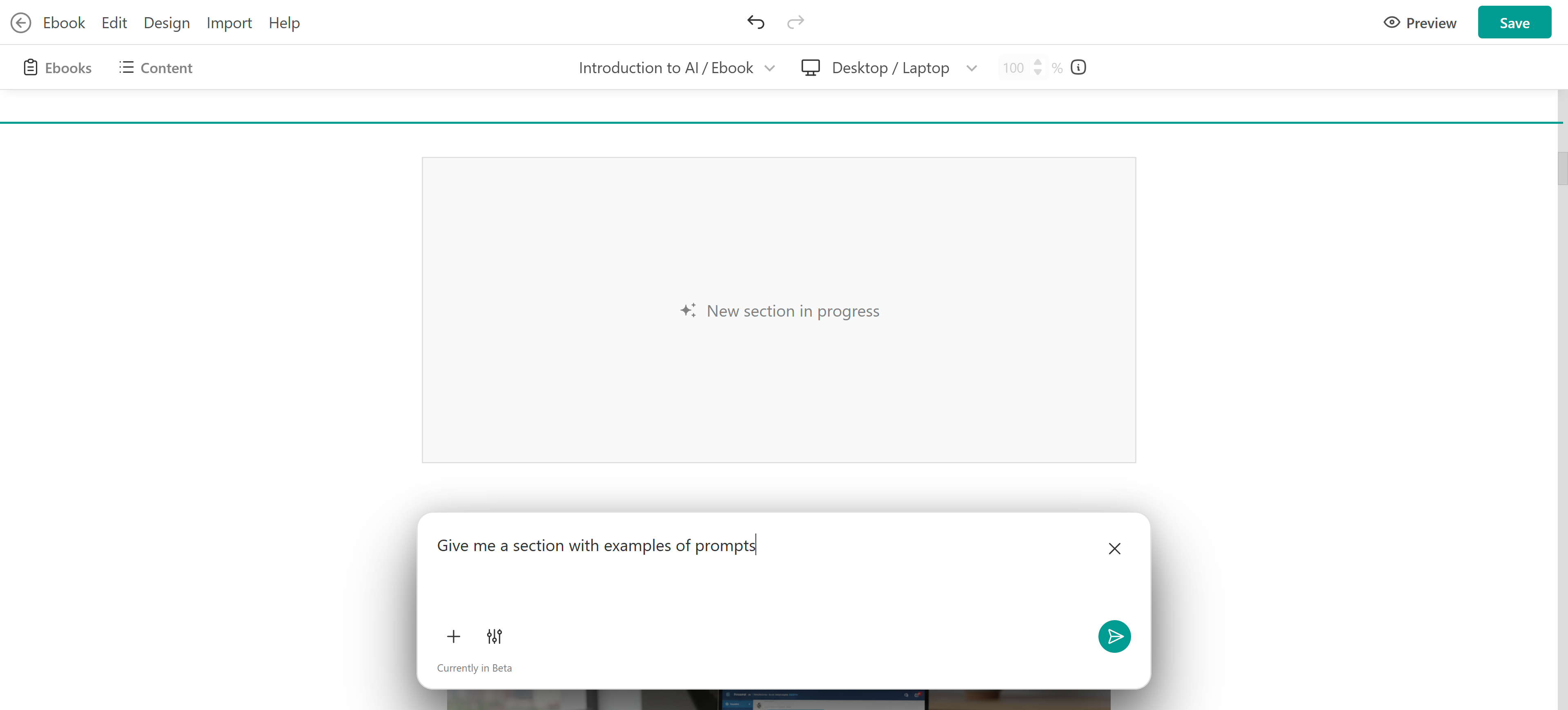 Just like when creating the full eBook, a chat box will appear where you can describe what this new section should be about.