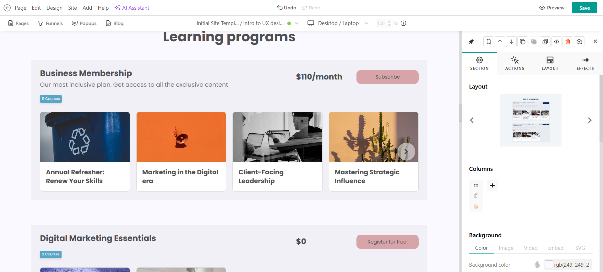 You can place this section on any editable page of your site, from your homepage to custom sales pages, providing full flexibility in how you promote your offerings.