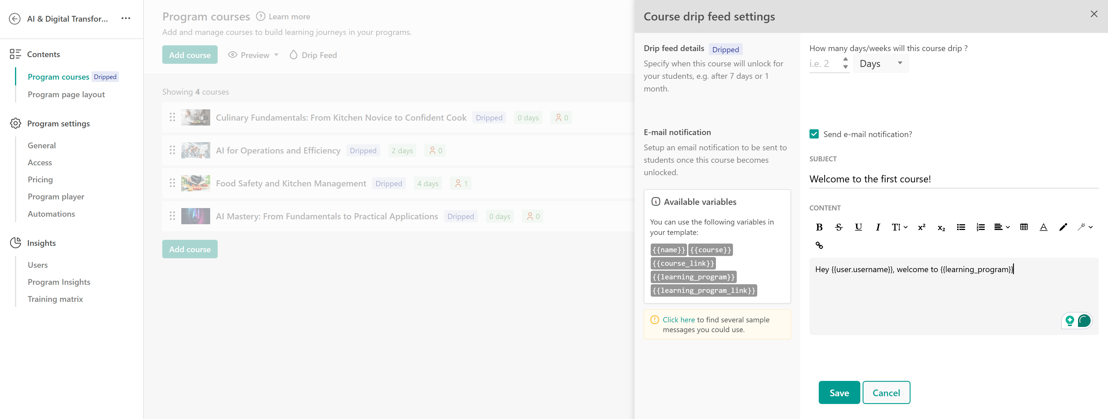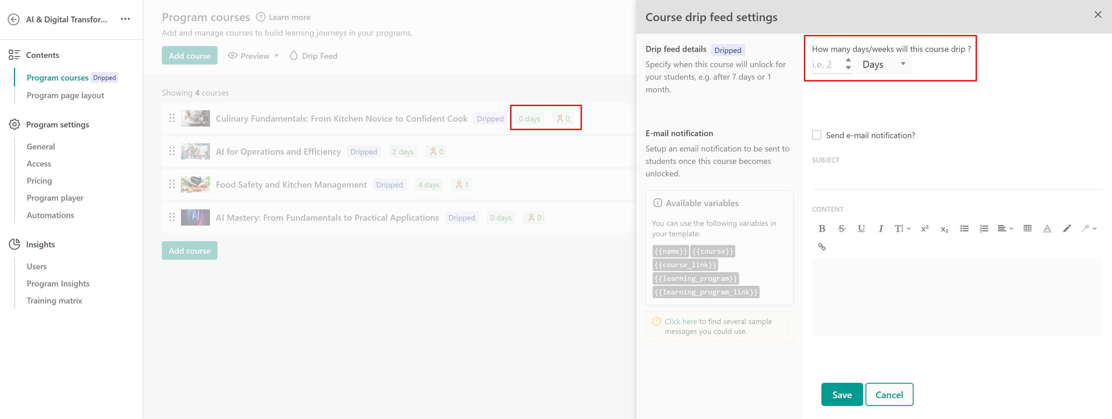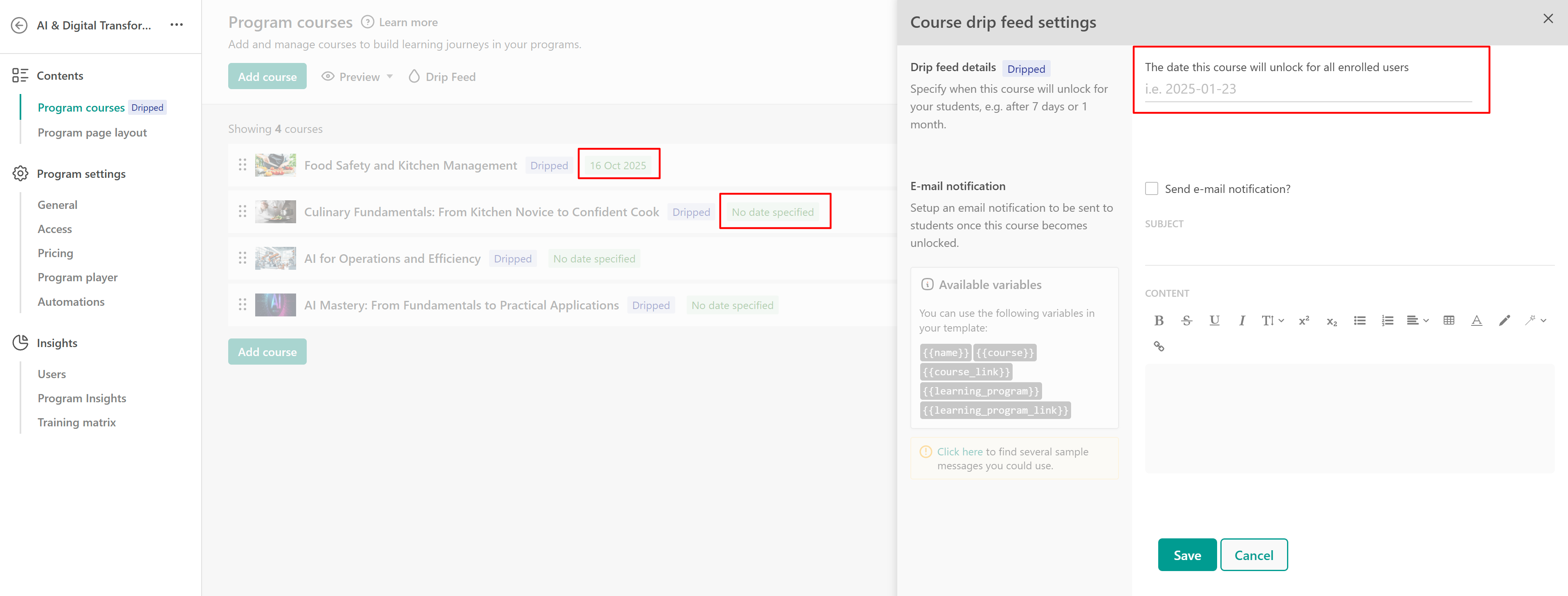 Setting Up Drip Feed for Program Courses