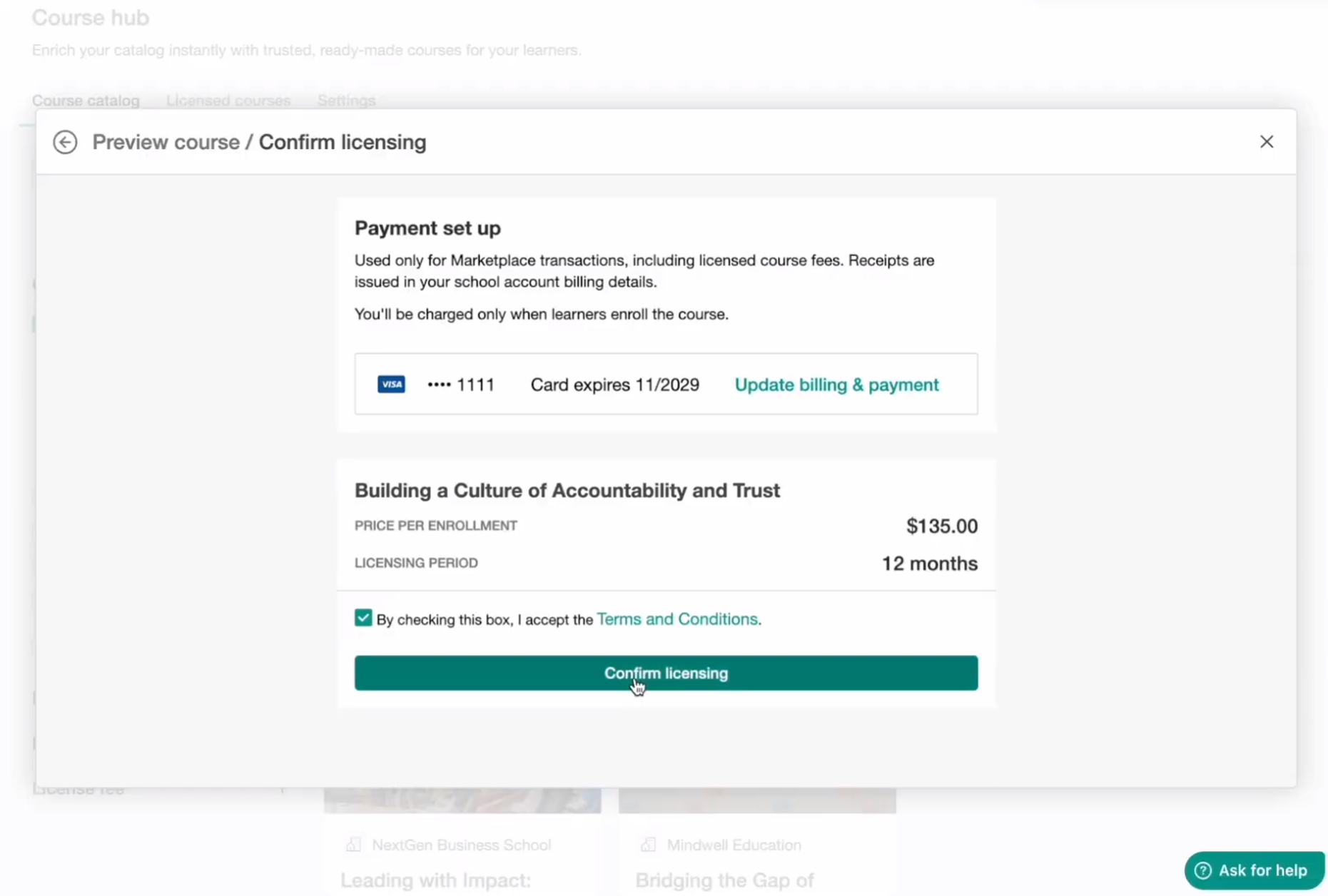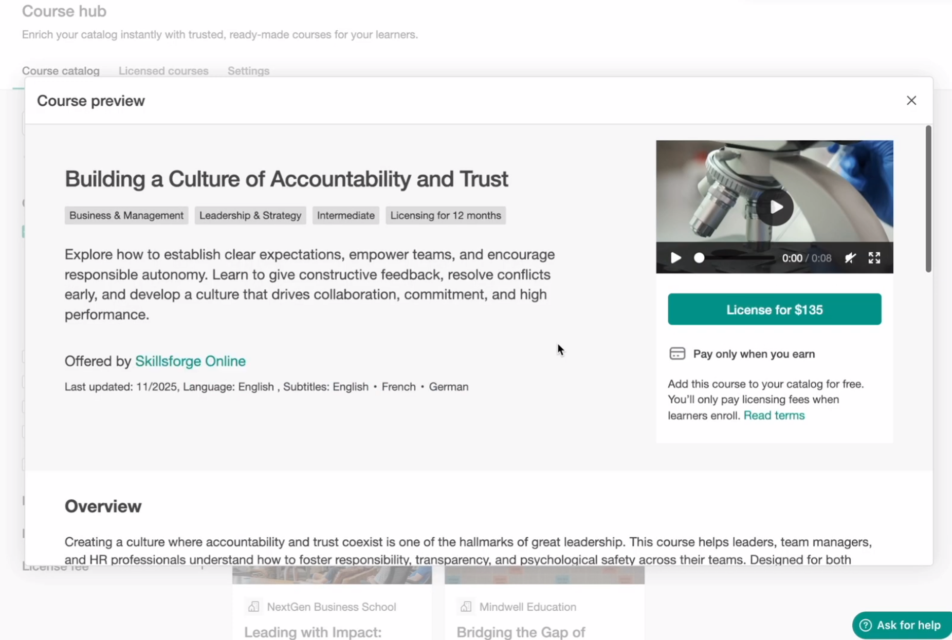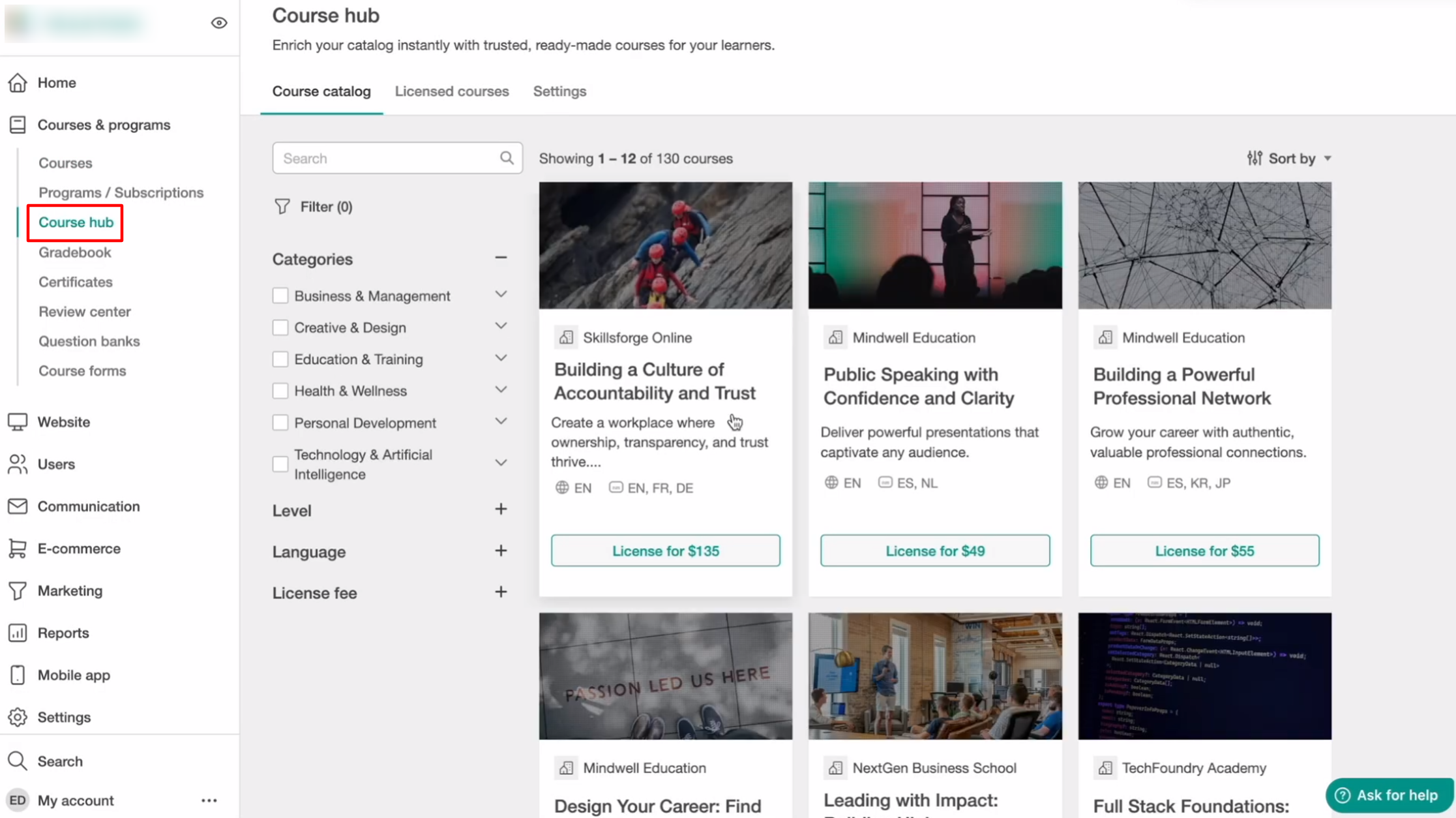 License a course from the course hub