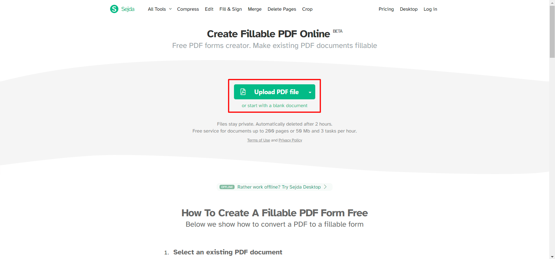1. Visit Sejda's official website: https://www.sejda.com/pdf-forms.