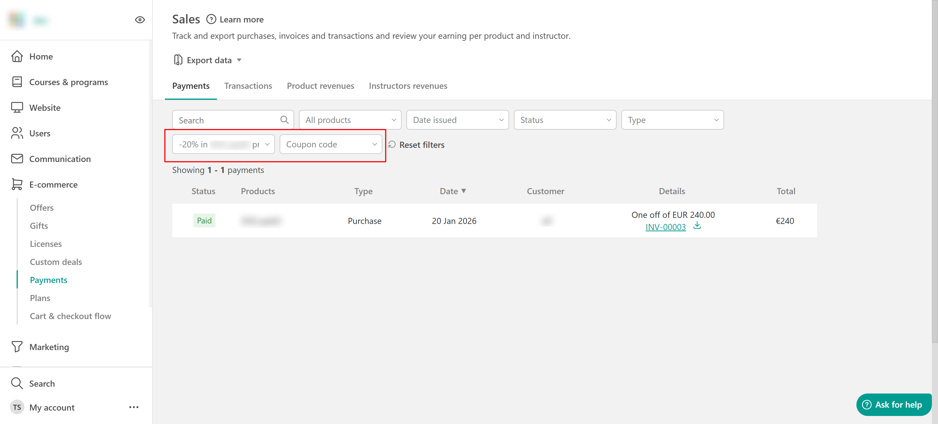 This feature allows you to create special product offers that reduce the price of your courses or learning programs, making it easier to attract and convert customers.